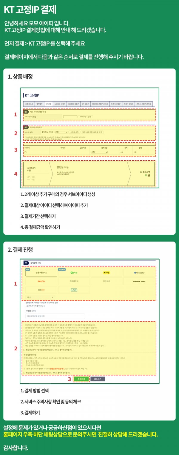 결제 | KT 고정IP 결제 페이지 정보 작성자 모모아이피 조회11,535회 댓글0건 관련링크 이전글 다음글 목록 본문 더 궁금하거나 추가적인 문의가 있으시다면 오른쪽 채팅상담 버튼클릭을 통해 문의해주시면친절하게 상담해 드리겠습니다. 댓글목록 등록된 댓글이 없습니다. 이전글 다음글 목록